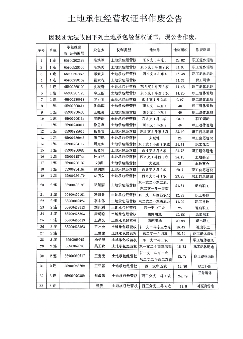 土地承包經營權證書作廢公告