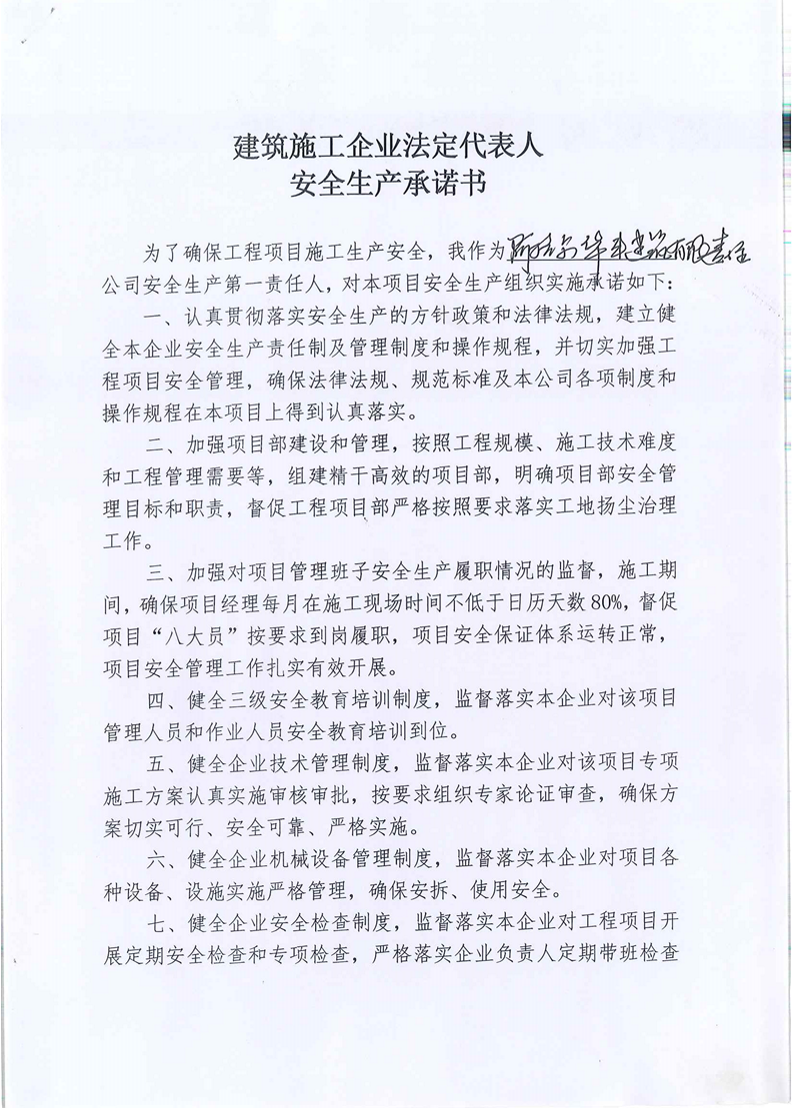 建筑施工企業(yè)法定代表人安全生產(chǎn)承諾書-阿拉爾華豐建筑有限責(zé)任公司