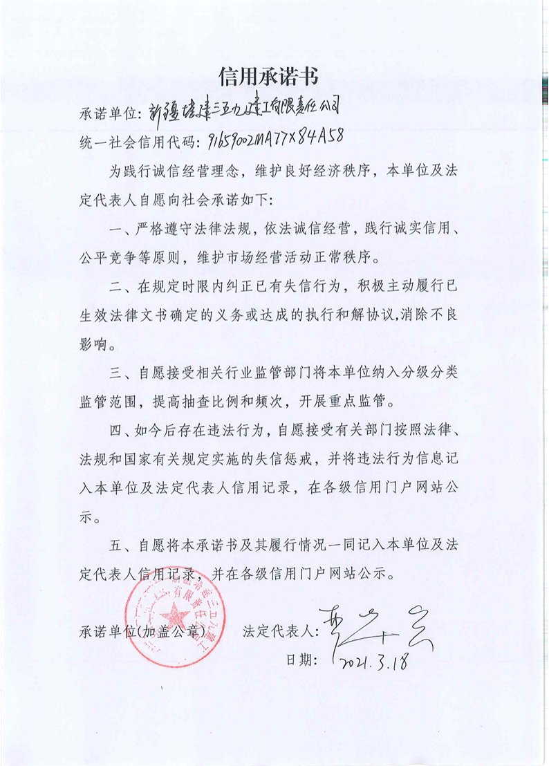 信用承諾書-新疆塔建三五九建工有限責任公司