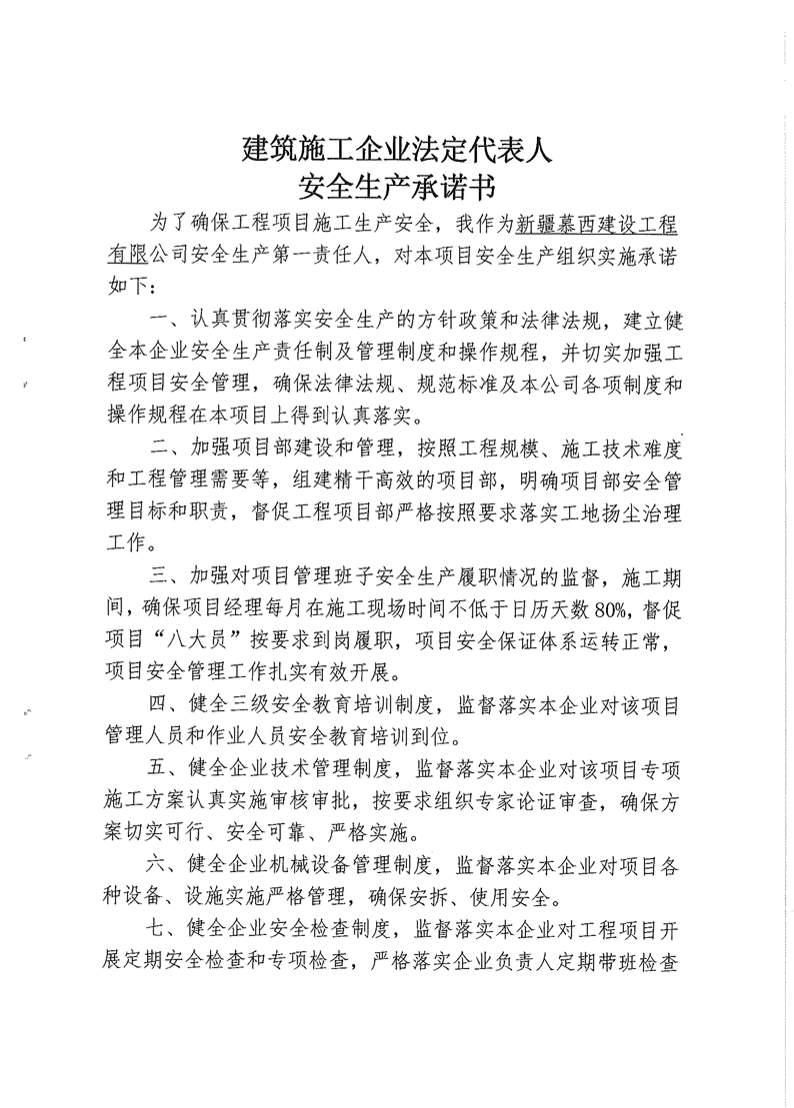 慕西建設(shè)--安全承諾書
