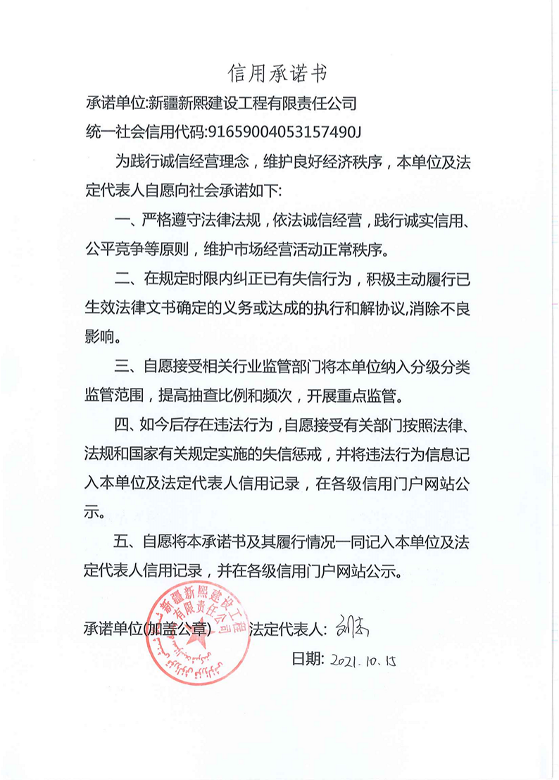 新熙建司--信用承諾書