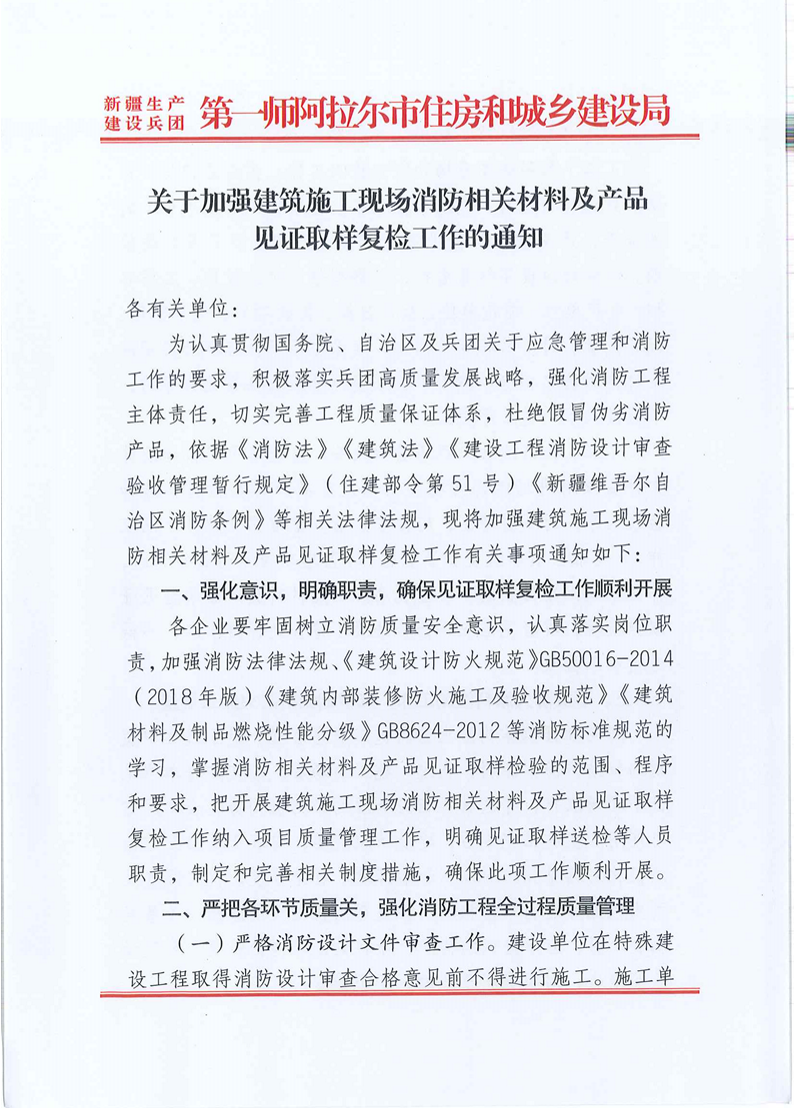 關(guān)于加強(qiáng)建筑施工現(xiàn)場(chǎng)消防相關(guān)材料及產(chǎn)品見(jiàn)證取樣附件工作的通知