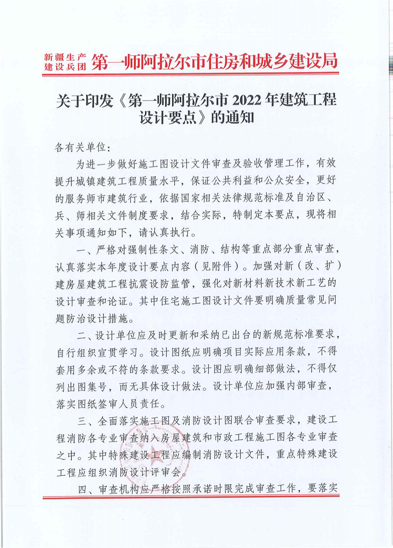 關(guān)于印發(fā)《第一師阿拉爾市2022年建筑工程設(shè)計要點》的通知