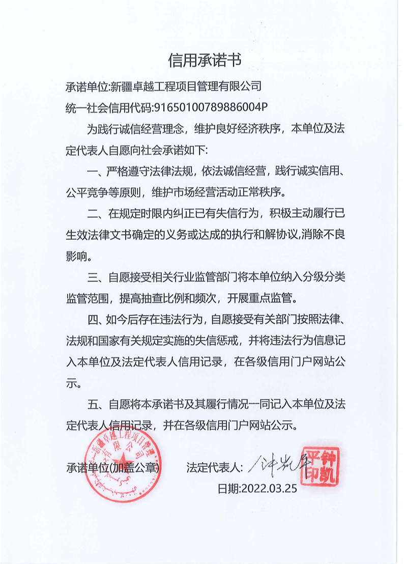 卓越監理--信用承諾書