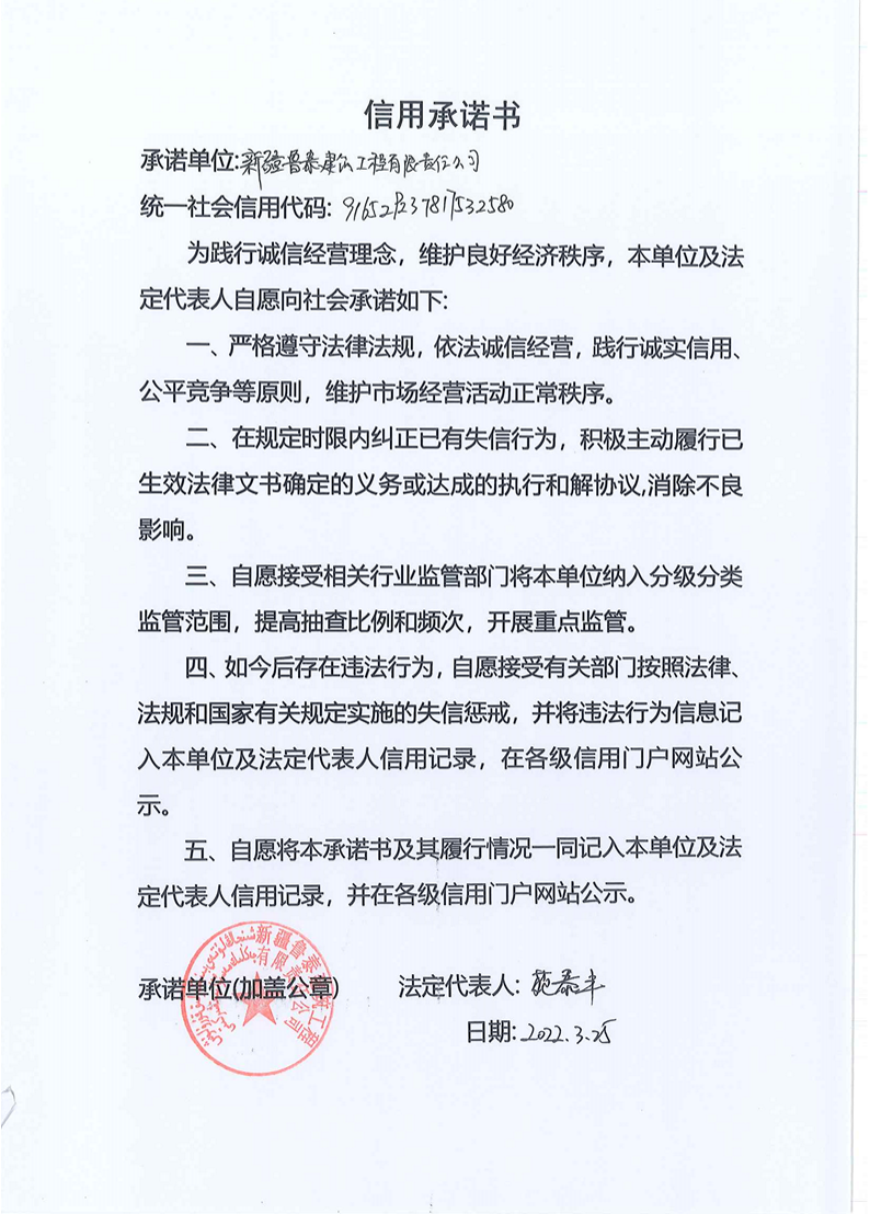 魯泰建司--信用承諾書