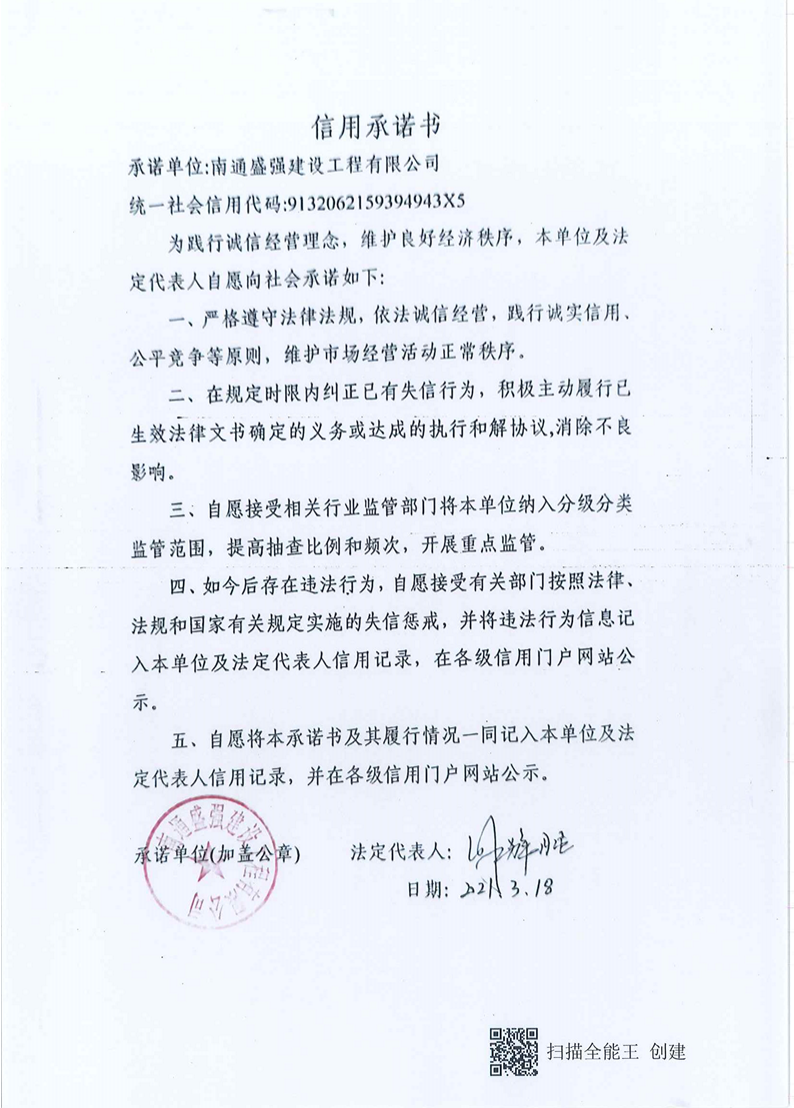 南通盛強(qiáng)--信用承諾書