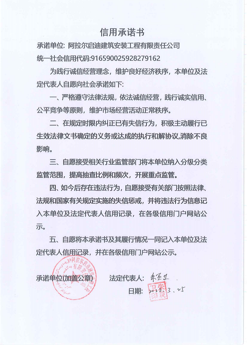 啟迪建司--信用承諾書(shū)