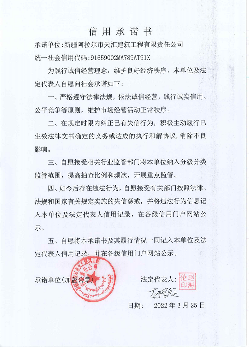 天匯建司--信用承諾書