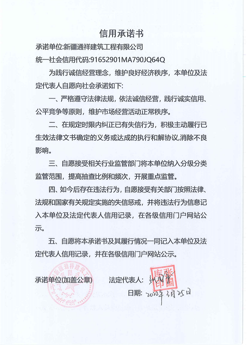 通祥建司--信用承諾書(shū)