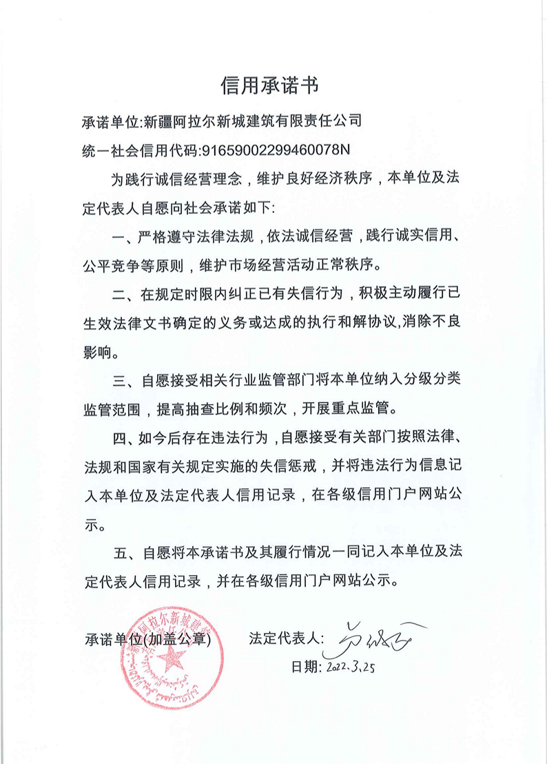 新城建司--信用承諾書