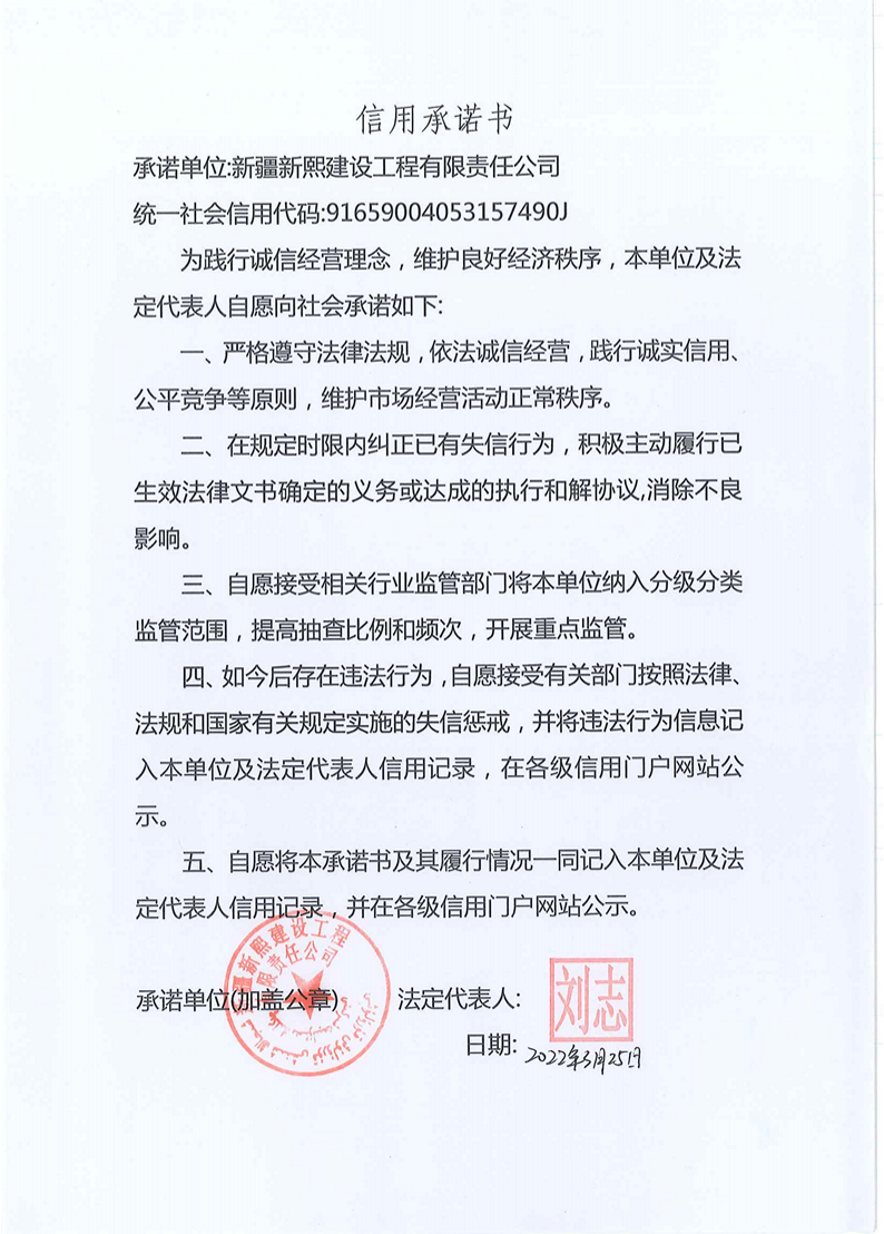 新熙建司--信用承諾書