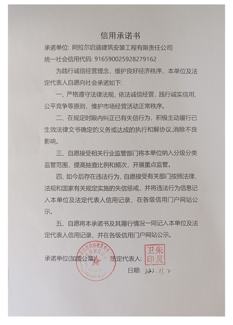 啟迪建司---信用承諾書