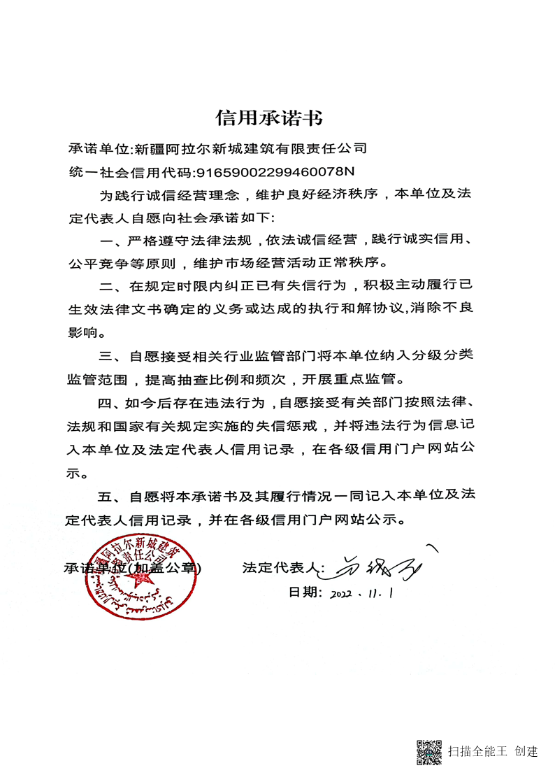 新城建司--信用承諾書