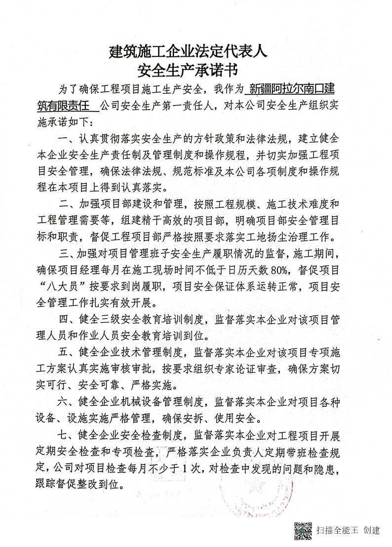 南口建司-安全生產承諾書