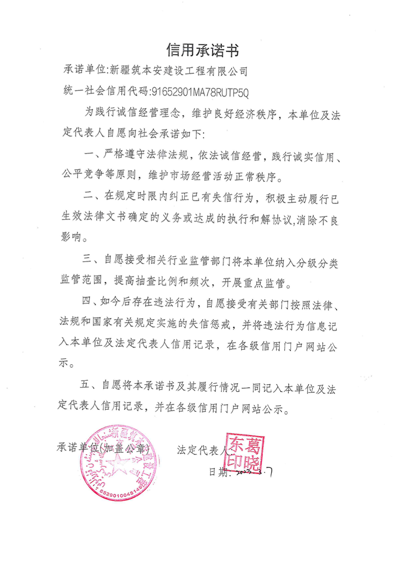 筑本安信用承諾書