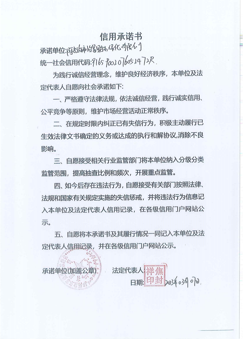 怡景園林信用承諾書