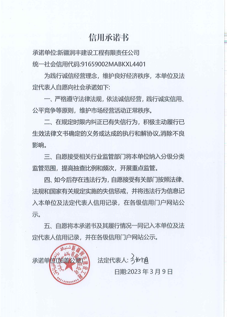 潤豐建司信用承諾書