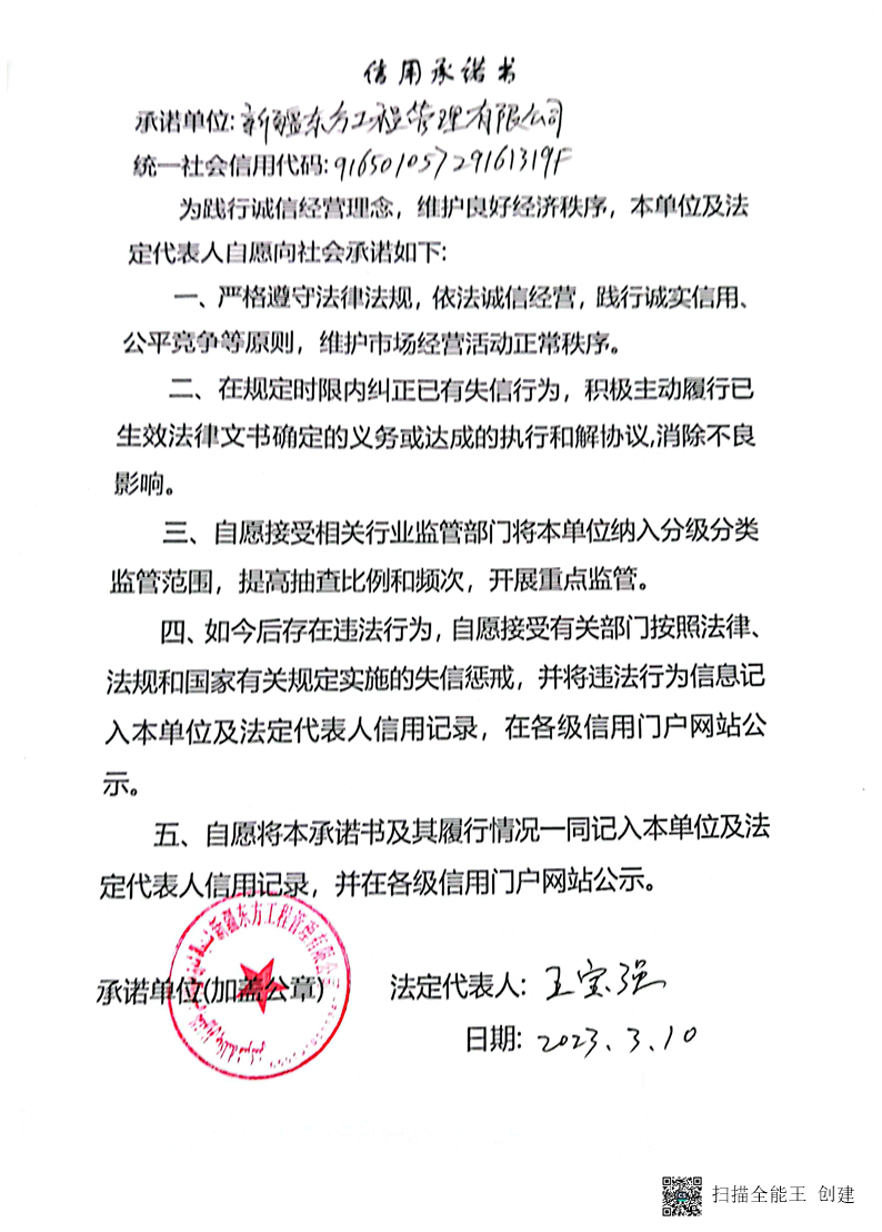 東方監理信用承諾書