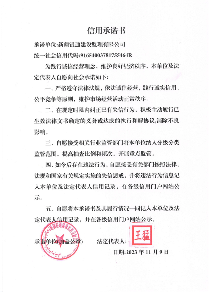 銀通監理信用承諾書