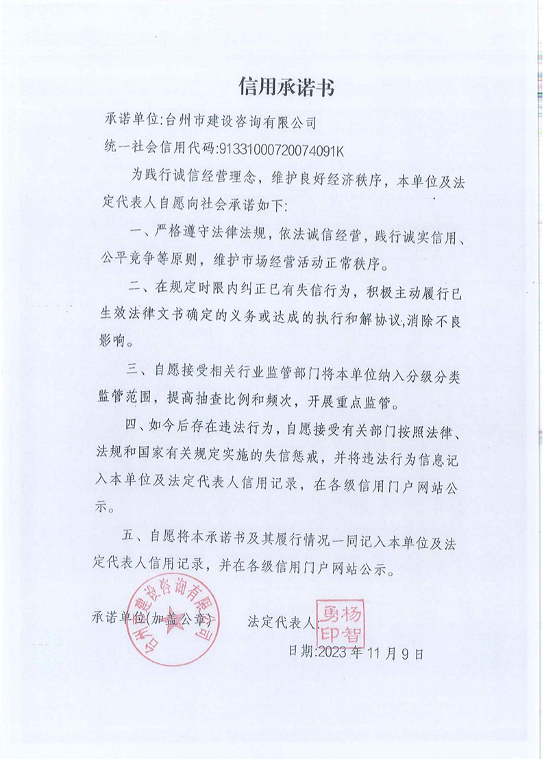 臺州監理信用承諾書