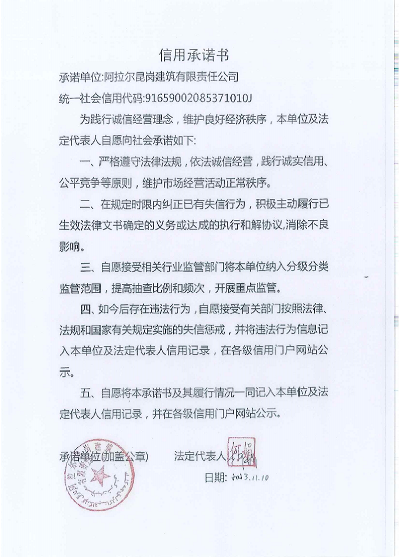 昆崗建司信用承諾書