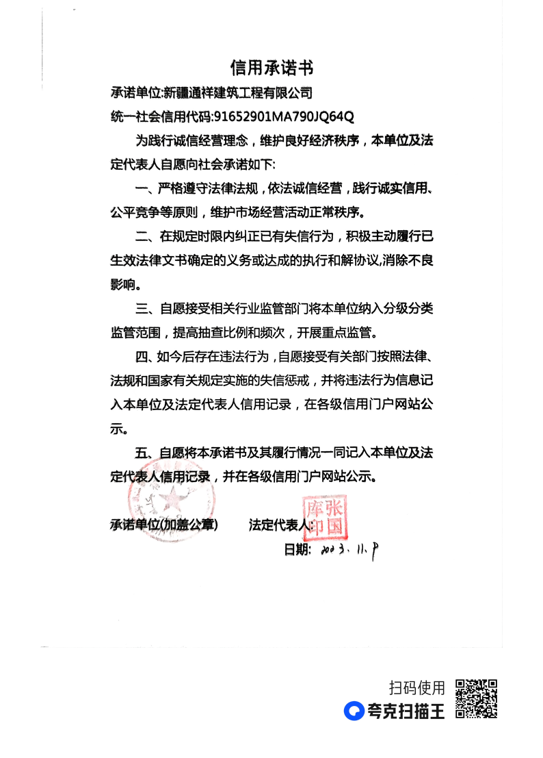 通祥建司信用承諾書