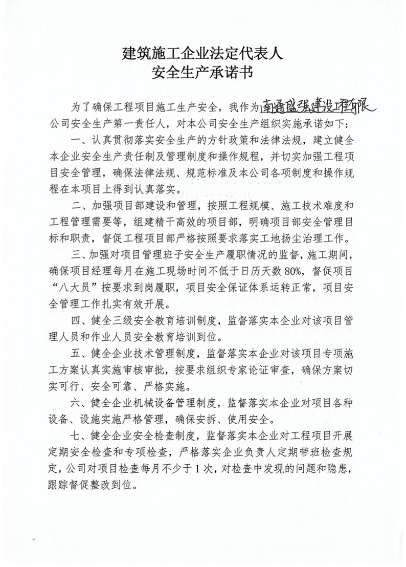 南通盛強安全承諾書