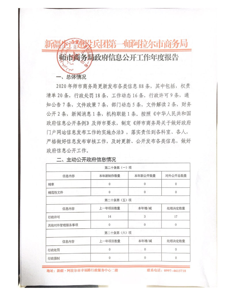 第一師阿拉爾市商務(wù)局2020年政府信息公開工作年度報告