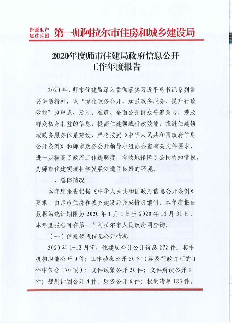 第一師阿拉爾市住房和城鄉(xiāng)建設(shè)局2020年政府信息公開工作年度報(bào)告