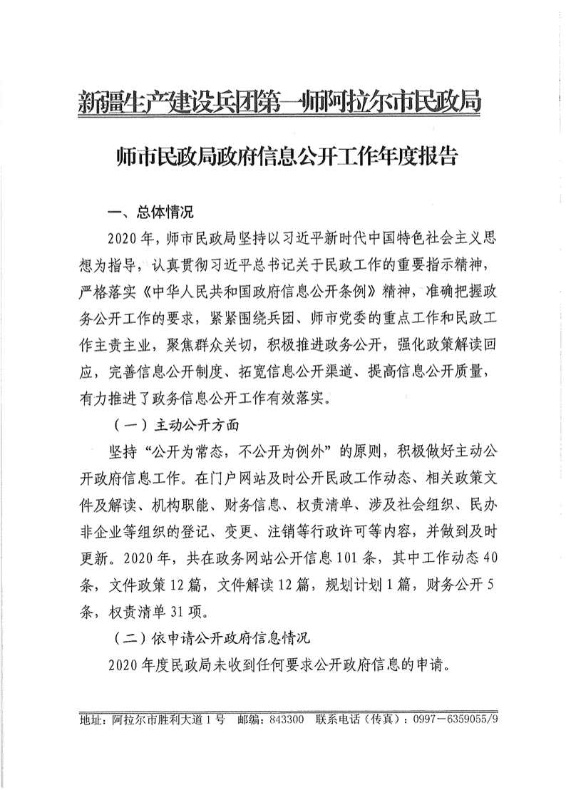 第一師阿拉爾市民政局2020年政府信息公開工作年度報告
