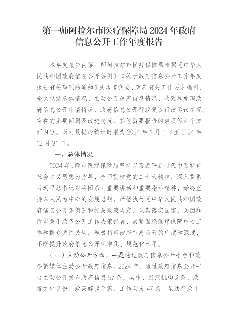 第一師阿拉爾市醫療保障局2024年政府信息公開工作年度報告