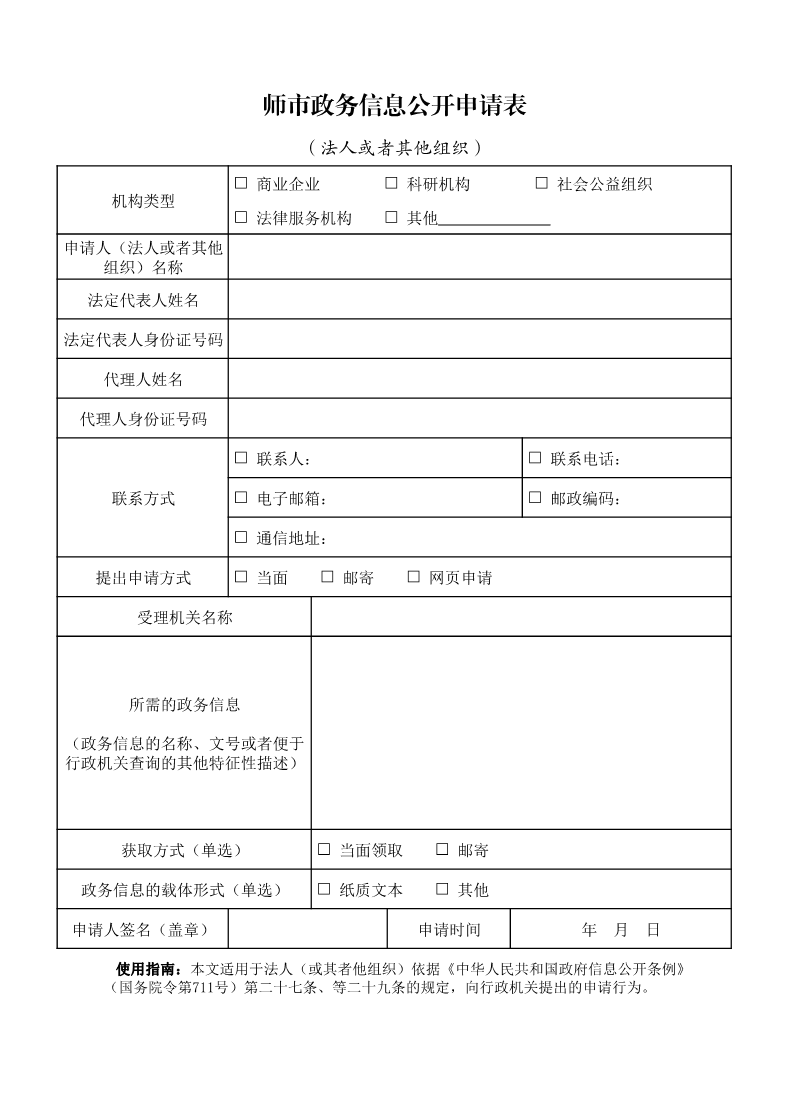 2.政務信息公開申請表(法人或者其他組織)