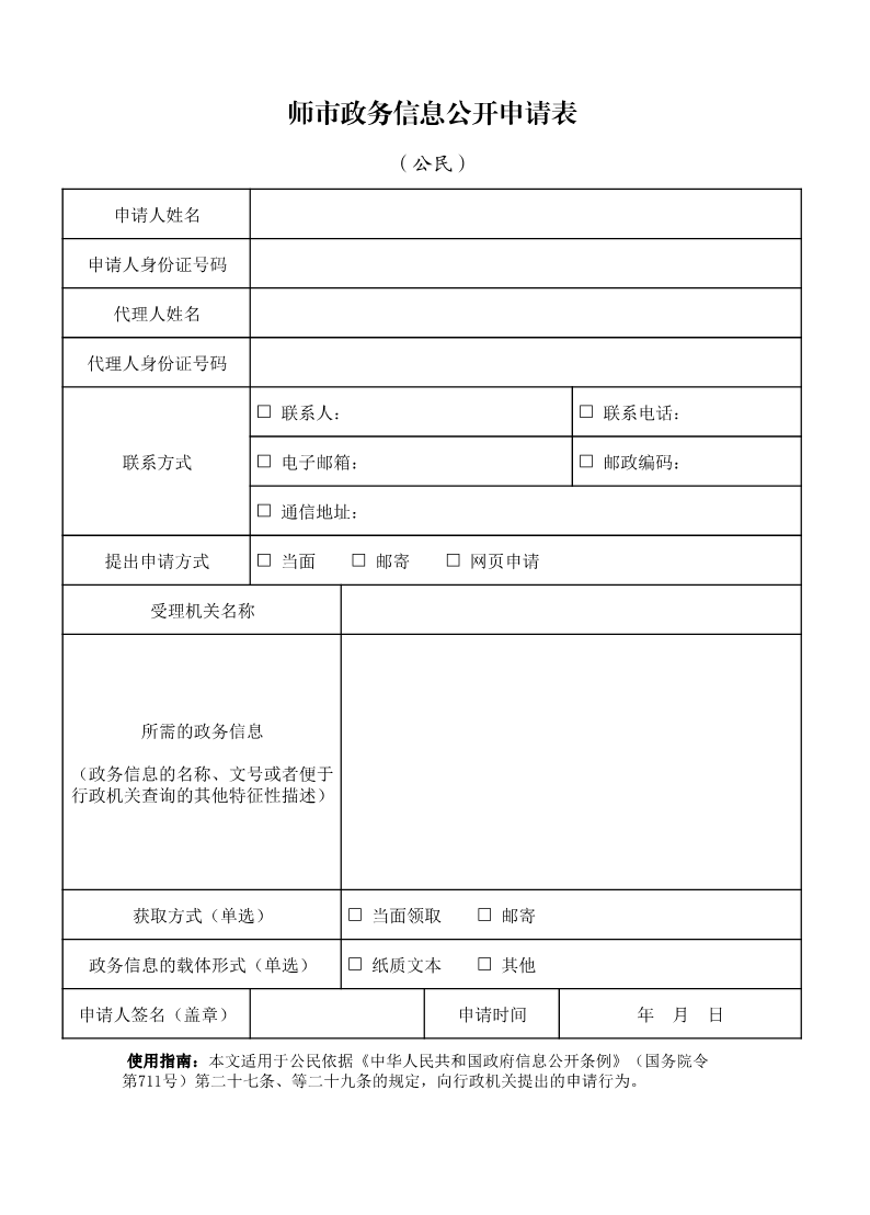公民、法人或者其他組織(以下簡稱申請人)根據本指南,可申請公開師市或師市辦公室的政務信息。