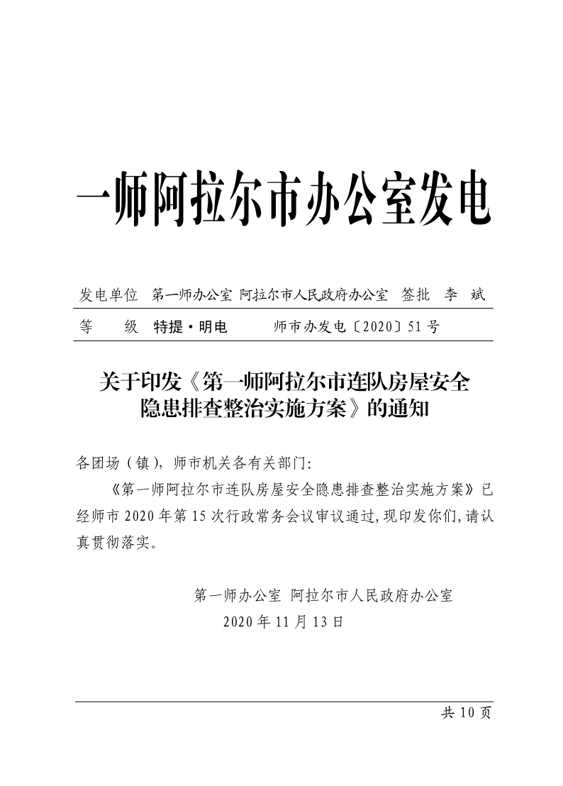 《第一師阿拉爾市連隊(duì)房屋安全 隱患排查整治實(shí)施方案》