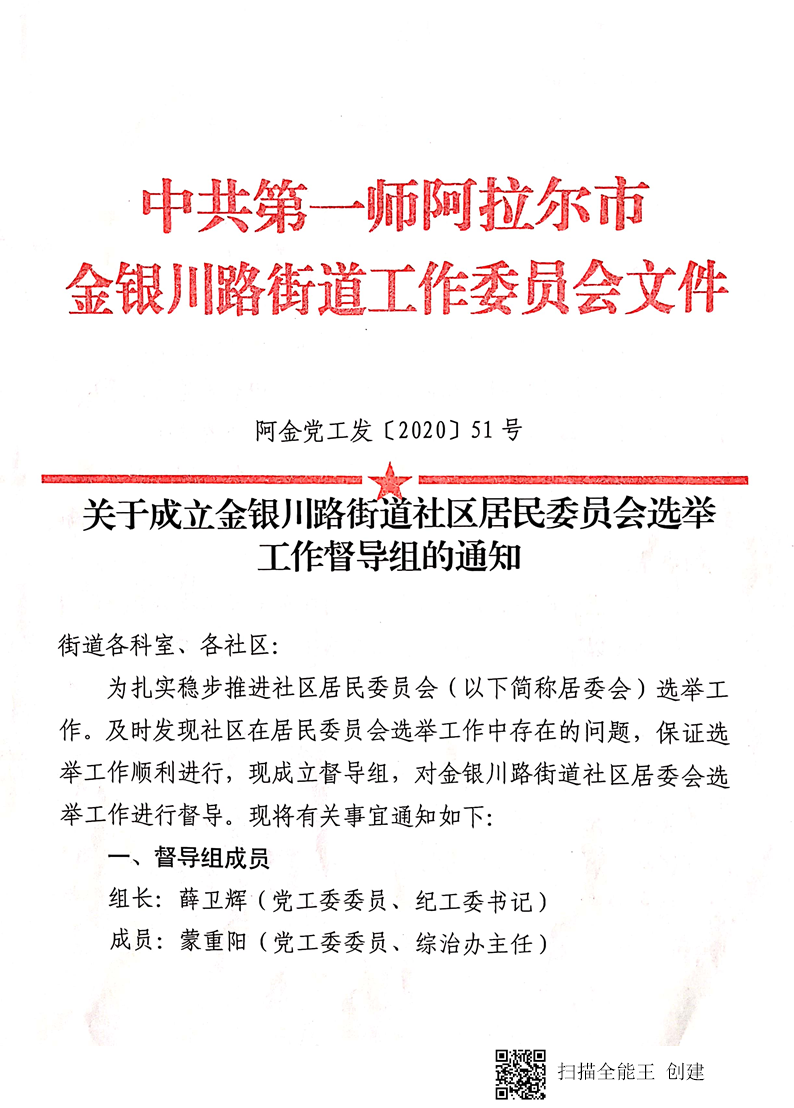 關于成立金銀川路街道社區居民委員會選舉工作督導組的通知