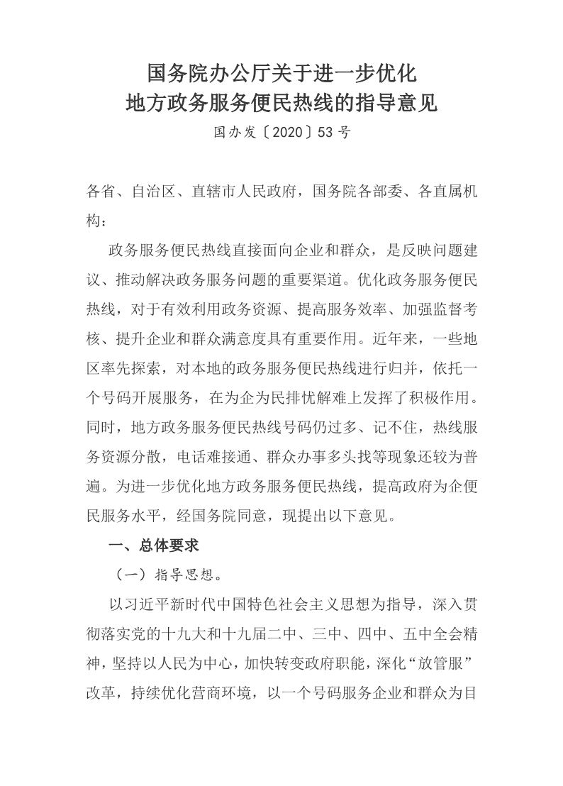 國(guó)務(wù)院辦公廳《關(guān)于進(jìn)一步優(yōu)化地方政務(wù)服務(wù)便民熱線的指導(dǎo)意見》