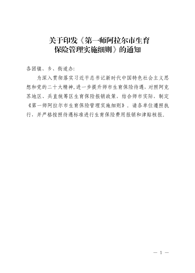 師市醫保發〔2023〕19號 關于印發《第一師阿拉爾市生育保險管理實施細則》的通知