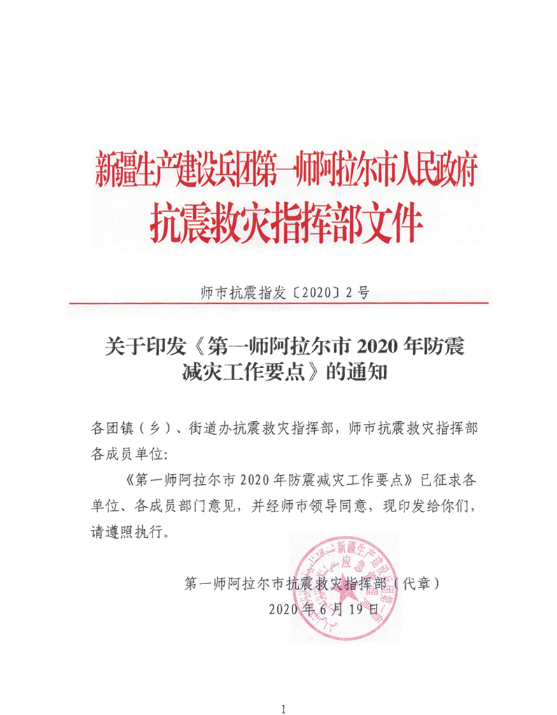 關(guān)于印發(fā)《第一師阿拉爾市2020年防震減災(zāi)工作要點(diǎn)》的通知