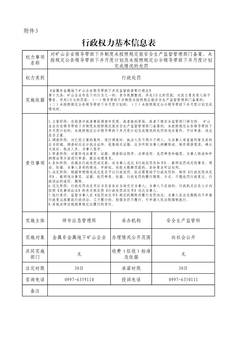 對礦山企業領導帶班下井制度未按照規定報安全生產監督管理部門備案、未按規定公告領導帶班下井月度計劃及未按照規定公示領導帶班下井月度計劃完成情況的處罰