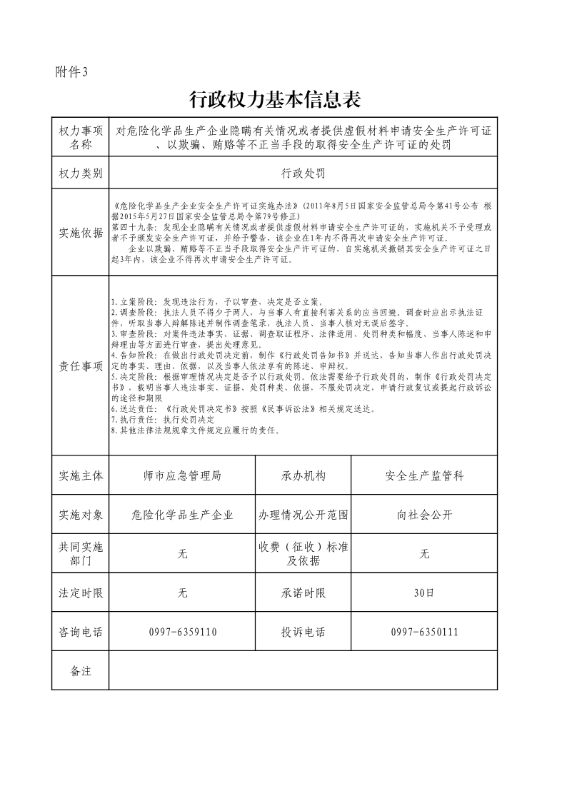對危險化學品生產企業隱瞞有關情況或者提供虛假材料申請安全生產許可證、以欺騙、賄賂等不正當手段的取得安全生產許可證的處罰