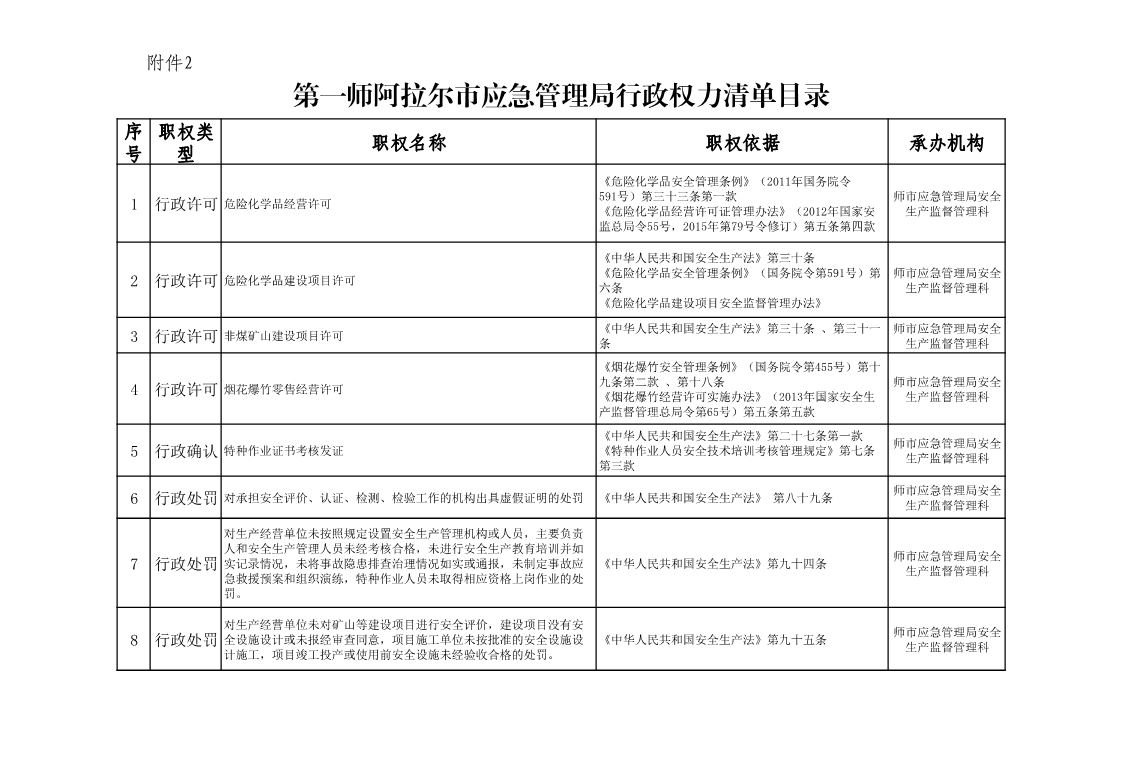 第一師阿拉爾市應急管理局行政權力清單目錄