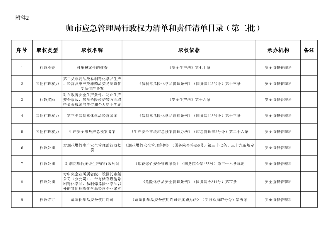 師市應急管理局行政權力清單和責任清單目錄(第二批)