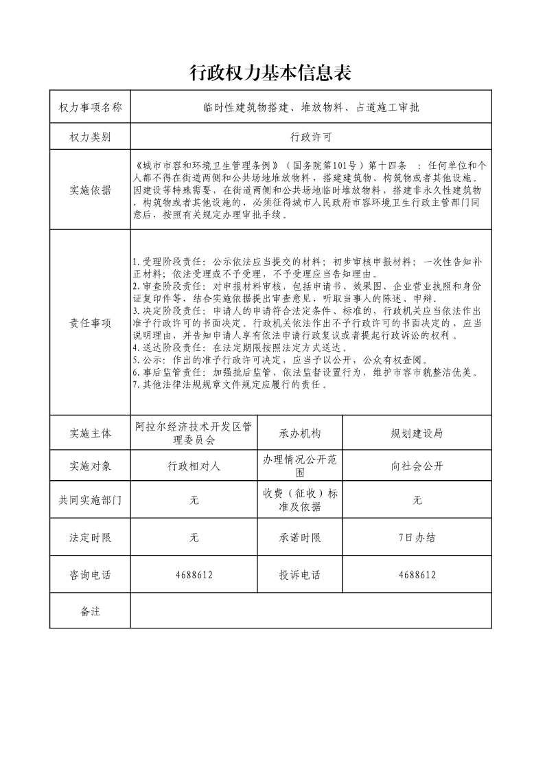 臨時性建筑物搭建、堆放物料、占道施工審批