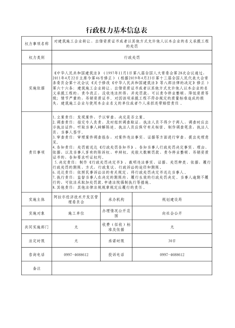 對建筑施工企業轉讓、出借資質證書或者以其他方式允許他人以本企業的名義承攬工程的處罰
