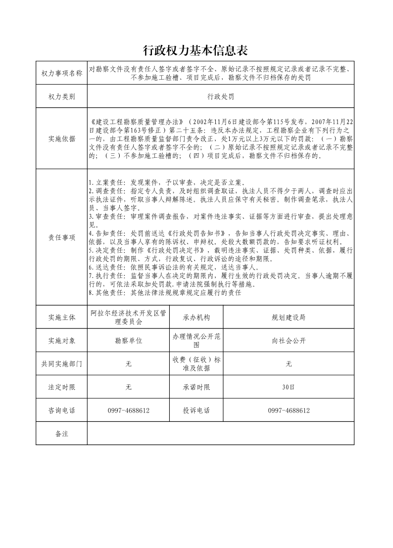 對勘察文件沒有責任人簽字或者簽字不全、原始記錄不按照規定記錄或者記錄不完整、不參加施工驗槽、項目完成后,勘察文件不歸檔保存的處罰