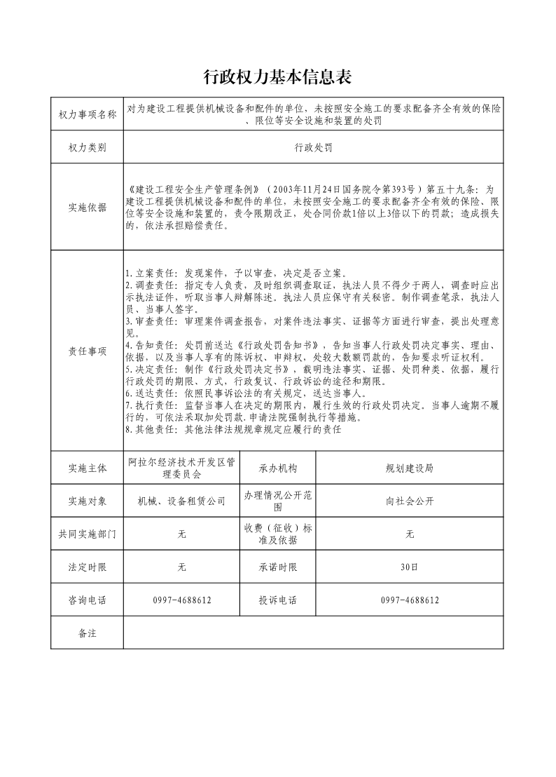 對為建設工程提供機械設備和配件的單位,未按照安全施工的要求配備齊全有效的保險、限位等安全設施和裝置的處罰