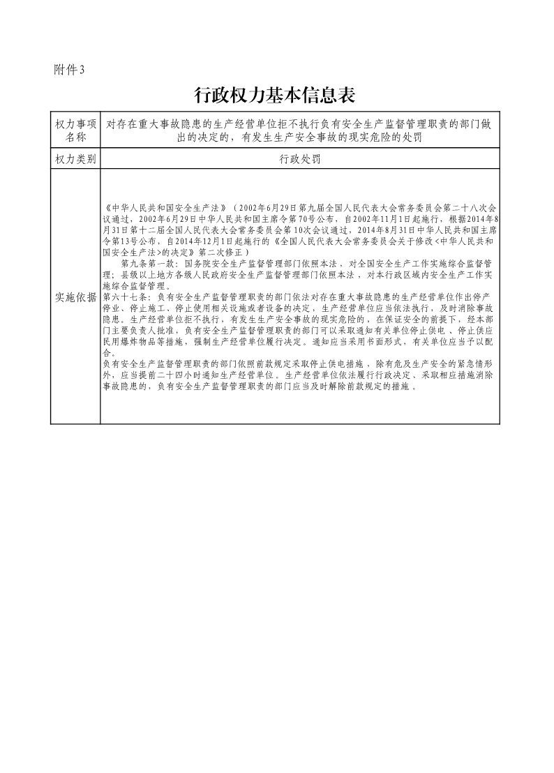 對存在重大事故隱患的生產經營單位拒不執行負有安全生產監督管理職責的部門做出的決定的,有發生生產安全事故的現實危險的處罰