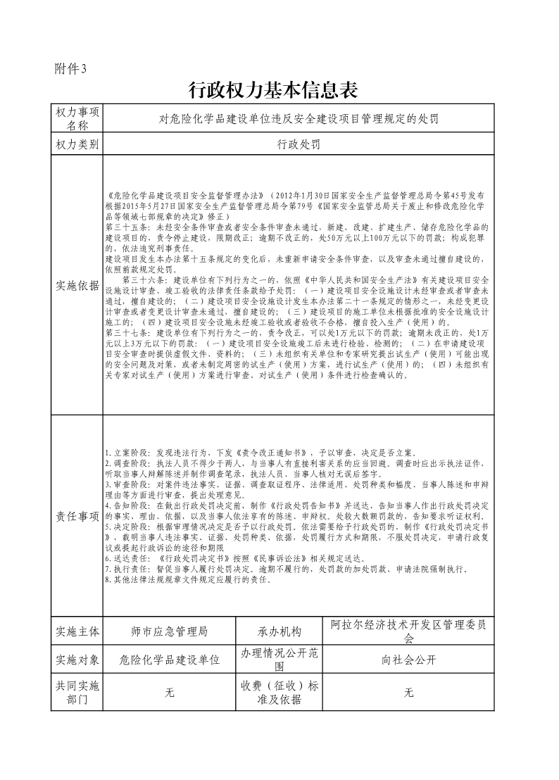 對危險化學品建設單位違反安全建設項目管理規定的處罰