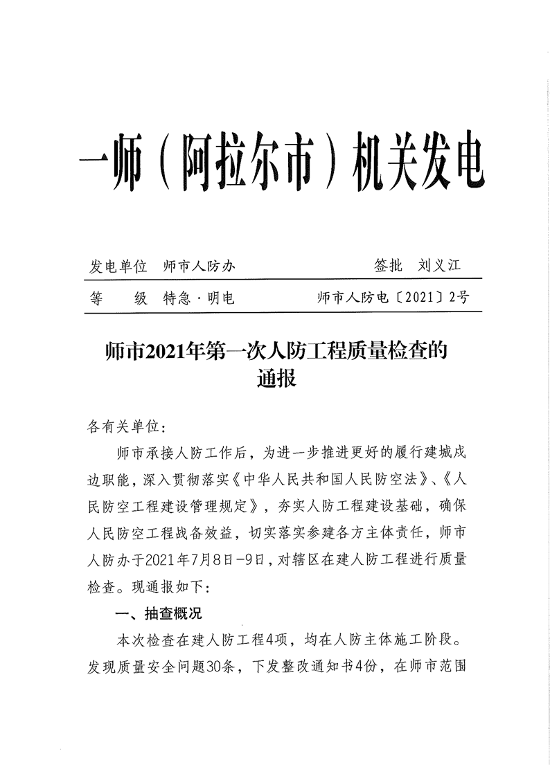 師市2021年第一次人防工程質(zhì)量檢查的通報(bào)
