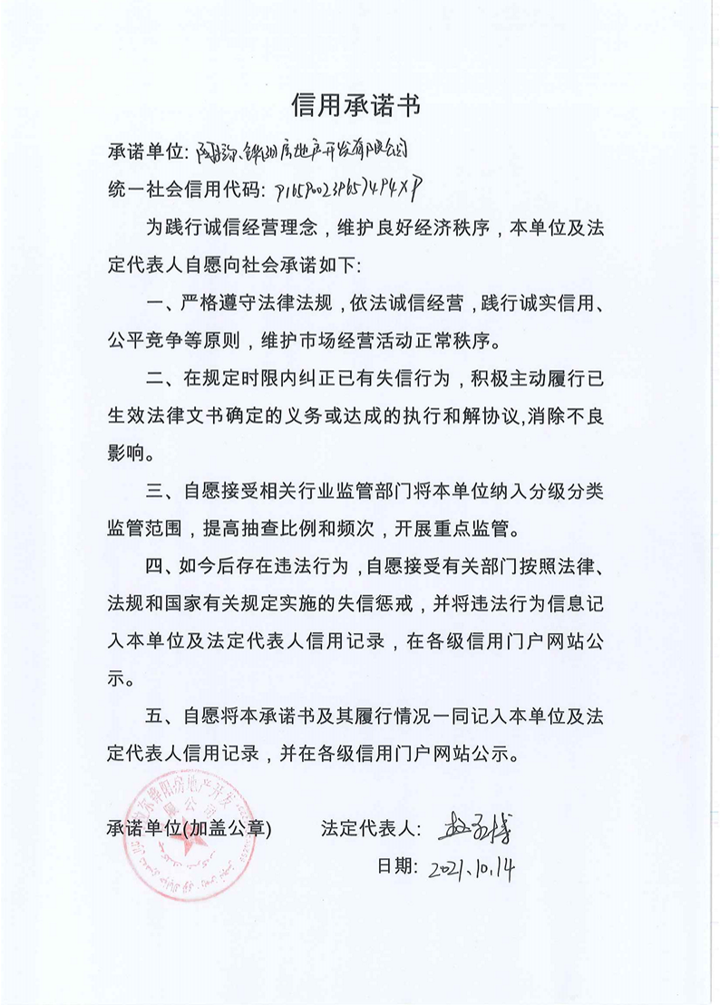 鏵陽房產--信用承諾書